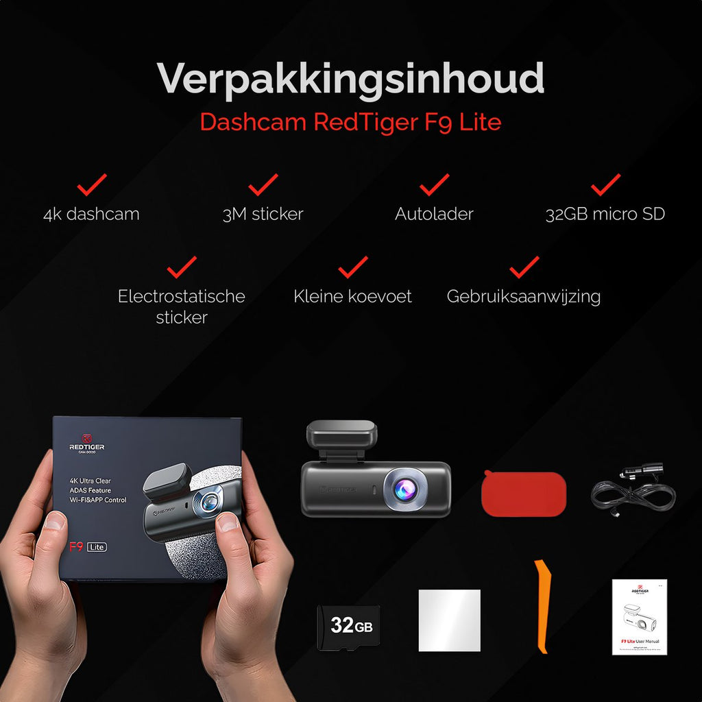 Of je nu dagelijks naar je werk rijdt, lange roadtrips zorgen voor talloze extra zekerheid in het verkeer de RedTiger F9 Lite 4K dashcam biedt de ultieme combinatie van beeldkwaliteit, veiligheid en gebruik. Dankzij de indrukwekkende 4K-resolutie leg je elk detail haarscherp vast, terwijl slanke functies zoals ADAS-rijhulpsysteem, WiFi, GPS en parkeermodus zorgen voor maximale bescherming, zelfs wanneer je auto geparkeerd staat. Deze dashcam is klein van formaat, maar groot in prestaties – en wordt compleet geleverd met een 32GB opgeslagen, zodat je direct aan de slag kunt.